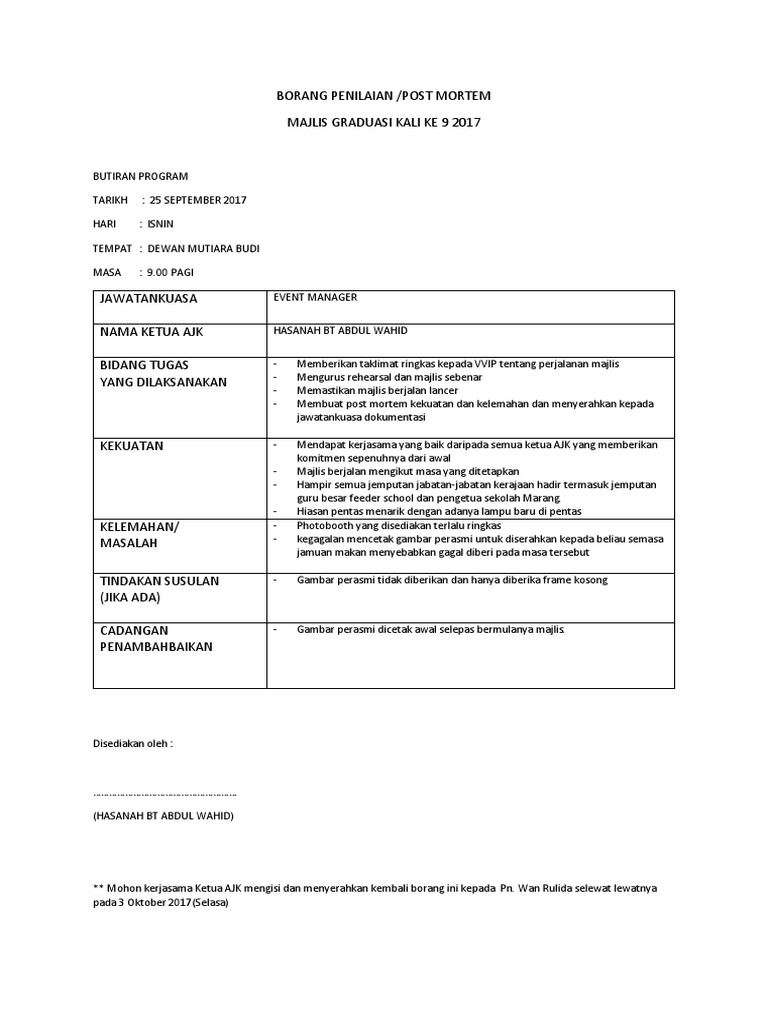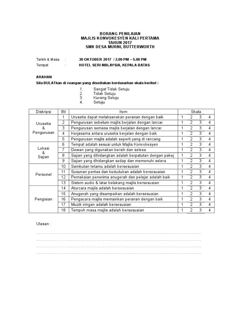 Contoh Borang Penilaian Majlis / Checklist Persediaan Perkahwinan Pdf Document : Simpan simpan borang penilaian temuduga untuk nanti.. Simpan simpan borang penilaian temuduga untuk nanti. Download lagu contoh borang penilaian (2.17mb) dan streaming kumpulan lagu contoh borang penilaian (2.17mb) mp3 terbaru di metrolagu untuk melihat detail lagu contoh borang penilaian klik salah satu judul yang cocok, kemudian untuk link download contoh borang penilaian ada di. Contoh borang penilaian jadual 10.1: Penilaian dan pedoman pengisian borang akreditasi. Contoh borang penilaian borang penilaian untuk anugerah program bersepadu sekolah sihat (pbss) (berdasarkan tahap usaha dan pencapaian sekolah dalam menggalakkan kesihatan di sekolah) nama.
